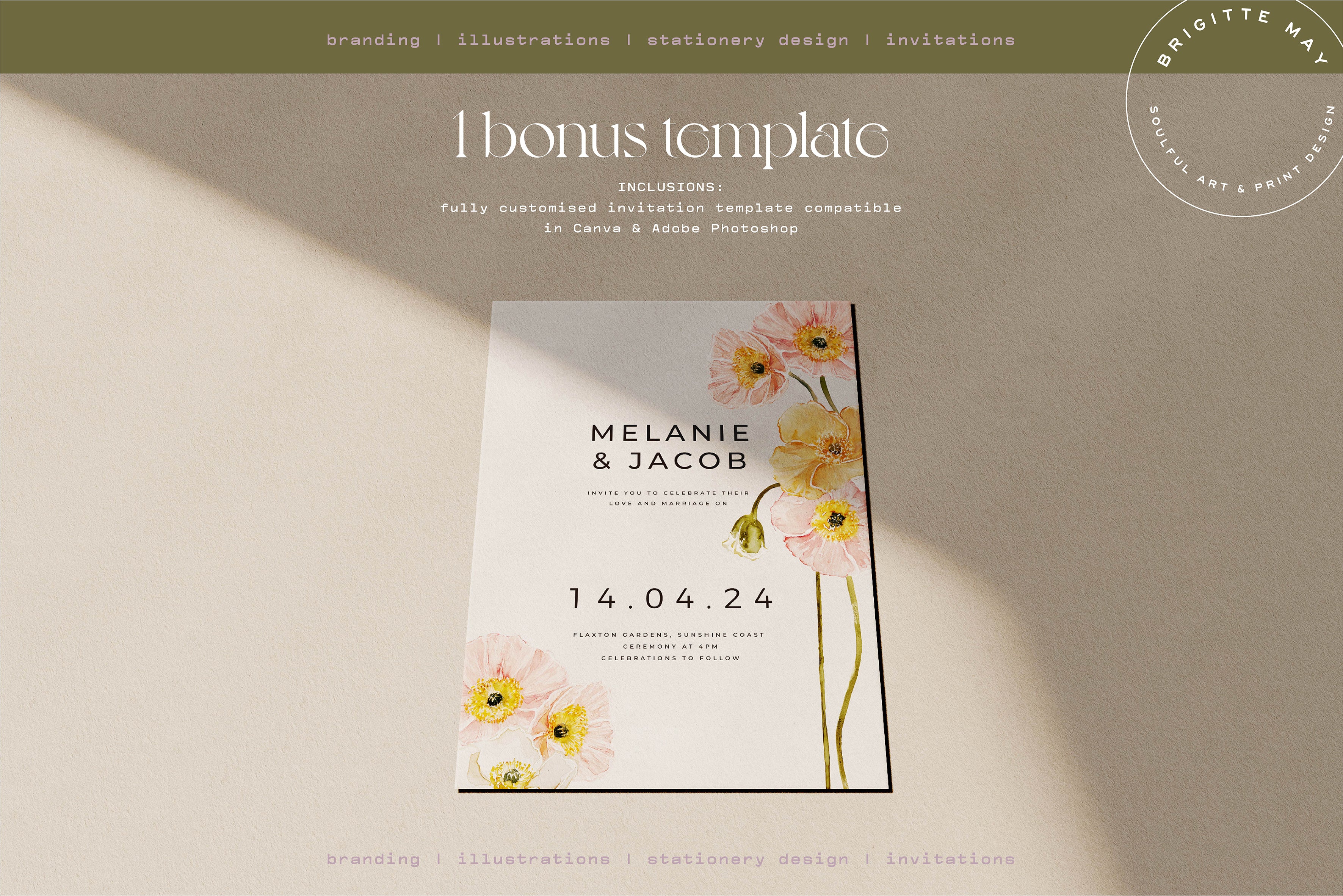 1 x Bonus customisable invitation template compatible with both CANVA & Adobe Photoshop